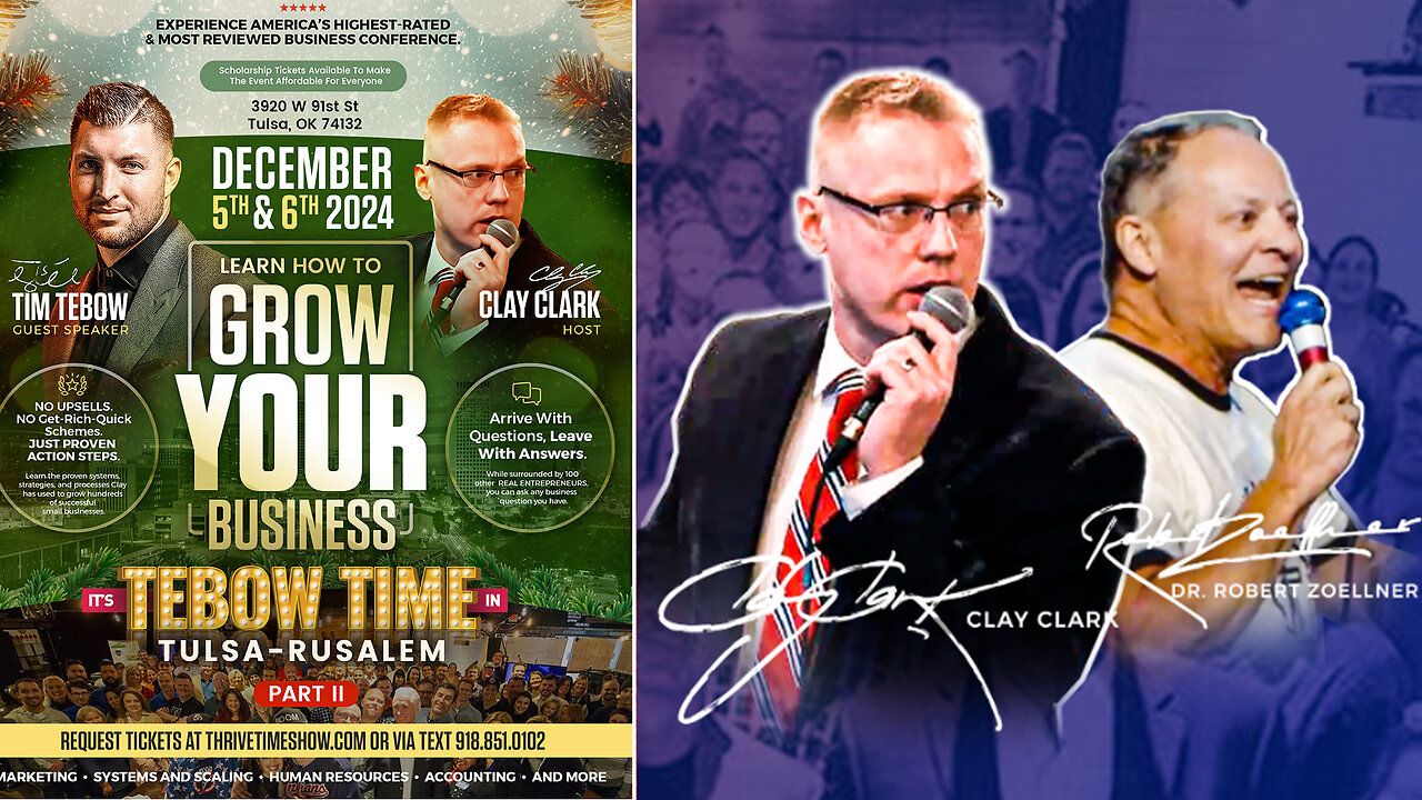 Join Tim Tebow, LIVE and in-person at Clay Clark's December 5th & 6th 2024 Thrivetime Show