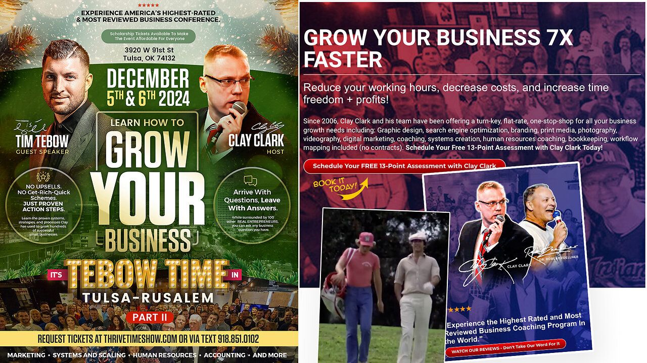 Join Tim Tebow, LIVE and in-person at Clay Clark's December 5th & 6th 2024 Thrivetime Show