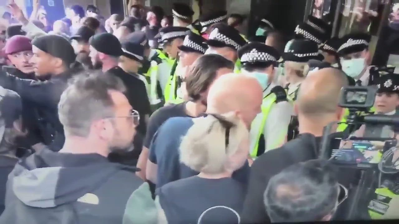 Protesters And Police At BBC Headquarters London