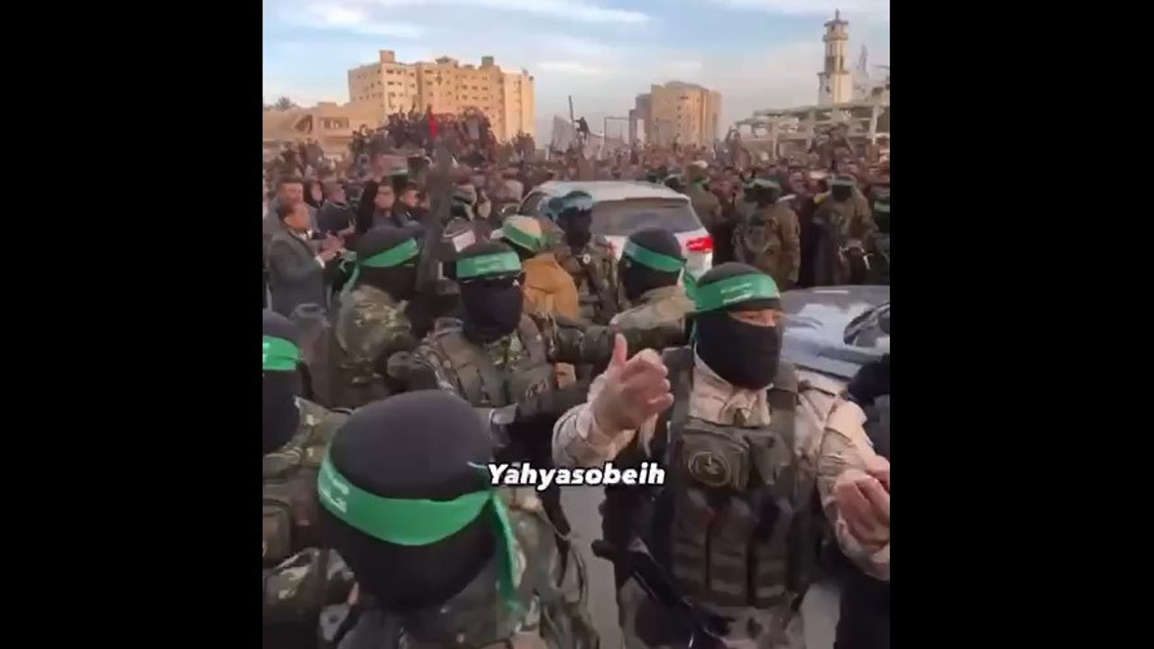 Footage shows Al-Qassam Brigades deploying amidst a massive public turnout during the handover of three Israeli female prisoners as part of the first phase of the prisoner exchange deal.