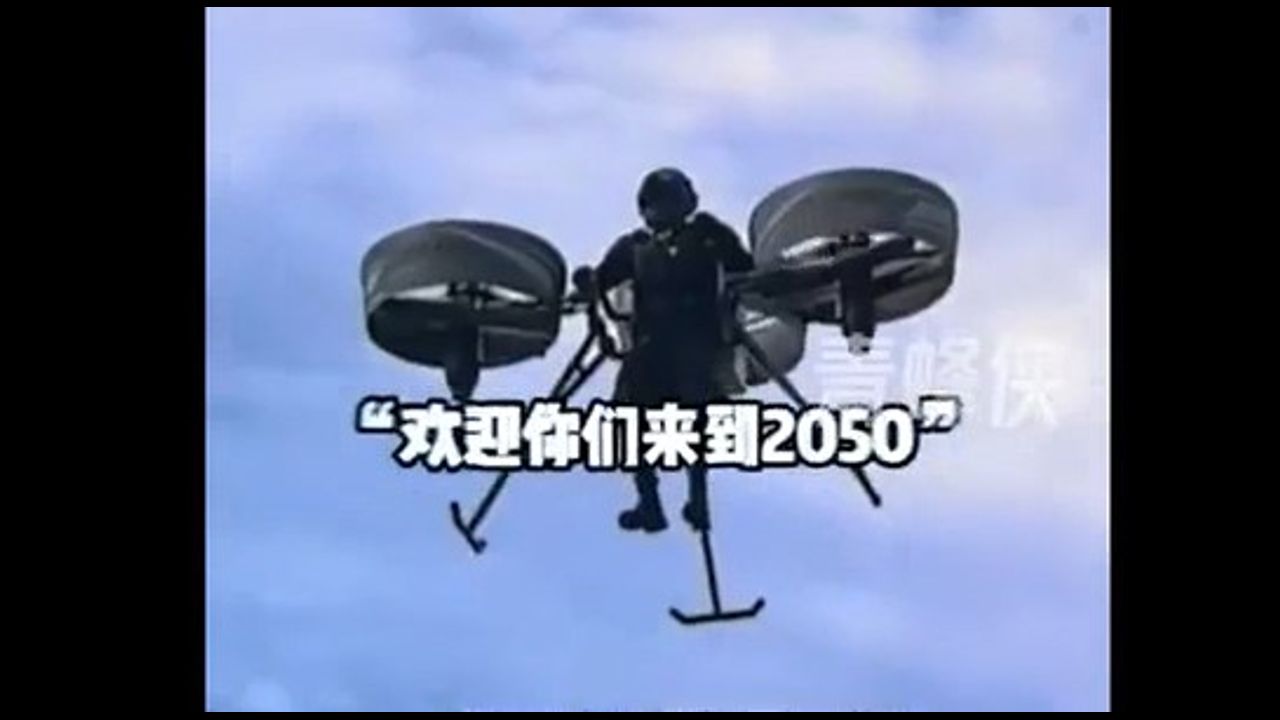 China’s home-grown wearable flying machine makes its first public flight in Hangzhou, soaring alongside a civil airliner.