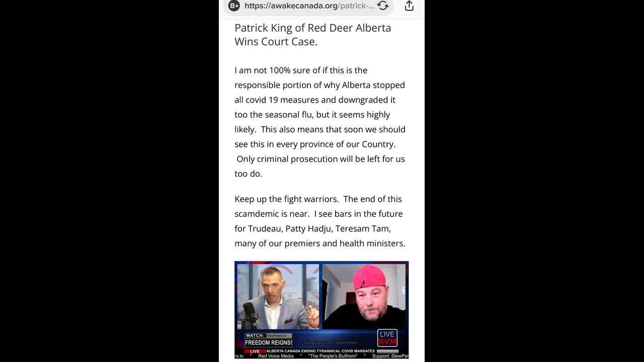 Patrick King a citizen of Alberta Canada has challenged the province of Alberta to prove that this virus ( PLANDEMIC — iSARS/Covid/19 ) is a true real virus… Lo and behold! The court system of Alberta could not prove any substantial medical science-based facts!!!! Nor evidence to prove that this is an actual “isolated” virus!!! NONE!!! for a virus to be real it must be proven to be an “isolated” virus!! The Alberta provincial courts have proven that this virus is not isolated therefore it does not exist!!! I repeat the courts of Alberta have proven that this virus is not scientifically provable to be an isolated virus! therefore the virus itself does not exist!! FACT
