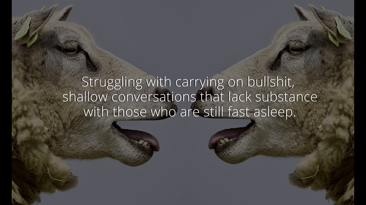 Feeling isolated in a crazy world where so many friends and loved ones are clueless. This is for you to know you are not alone! Watch this when you are feeling down.
