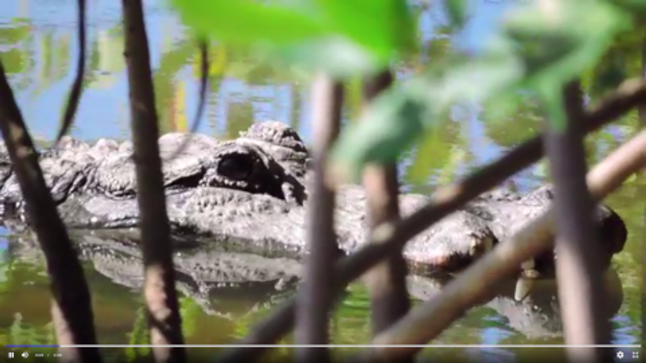 Big alligator hiding at the edge of the water, at Ding Darling Nature Preserve on Sanibel Island, Florida