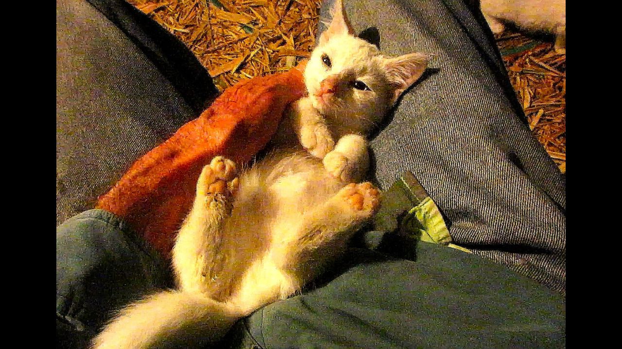 What a difference a day makes! TINY-TWO-EYES goes from WARY to PUTTY IN MY HANDS MVI_0683