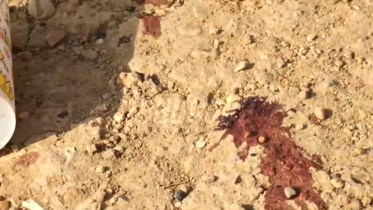 Bloodstains and scattered belongings of tourists are visible at the scene of the tragedy.