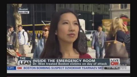 Dr. Leana Wen has been paraded out on CNN and other MSM channels, referring to her as a "medical expert" throughout the CV19 pandemic deception. BUT WAIT! Here is Leana Wen, in a clip from 2013, giving a FAKE on-the-street interview to CNN's Jake Tapper telling him how "horrific" the emergency room scene was with all the people who had been blown up at the Boston Marathon -- ALL of which was totally FAKE!