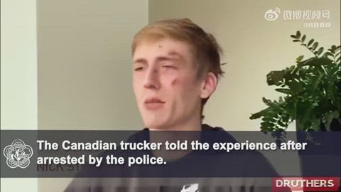 This trucker in the Canadian freedom trucker convoy was arrested and beaten by the police during the Ottawa protest, making him unable to breathe and scarred. He said that after being taken to the police station, the police gave him two options. One option is to sign a document of guarantee that he would not reenter the protest and then he would leave. His all charges would be dropped; The other option was to lose his business license and lose his ability to travel to the US. The trucker told the police that he would take the charges.