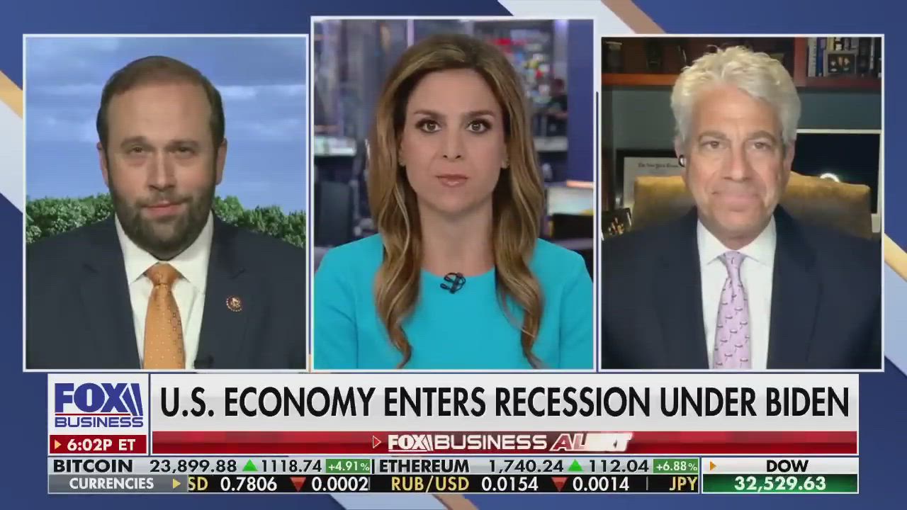 Missouri Rep. Jason Smith and Macro Trends Advisors founding partner Mitch Roschelle react to Biden claiming the U.S. is not in a recession despite two consecutive quarters of a shrinking economy on 'The Evening Edit.'