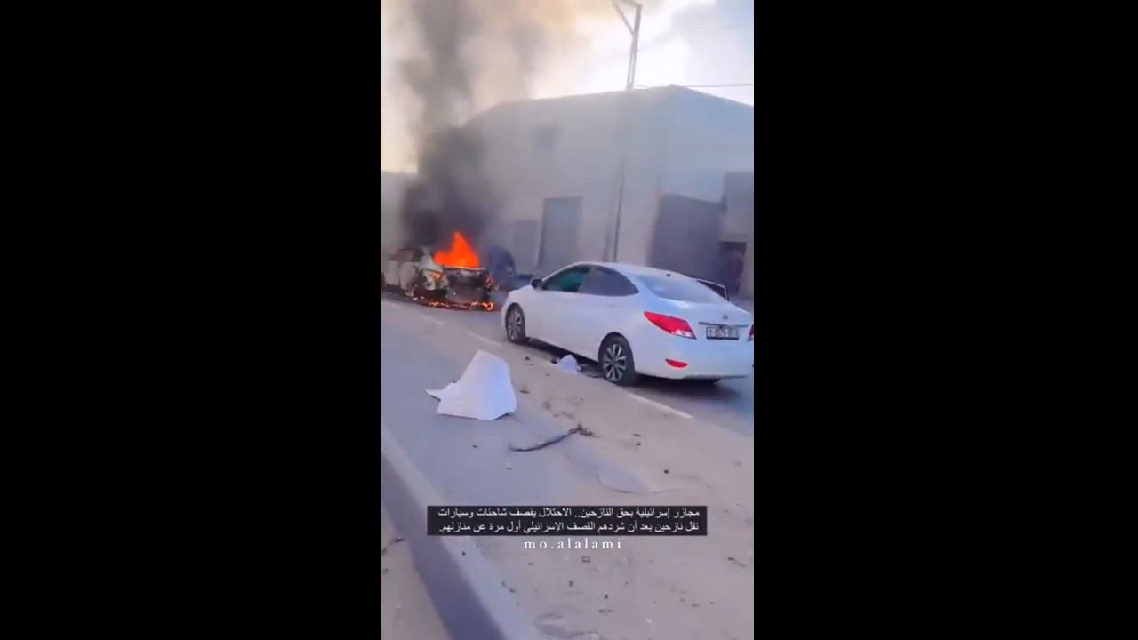 Video of the aftermath of an Israeli Air Force Strike on a convoy of civilians fleeing Gaza for the southern parts was published.