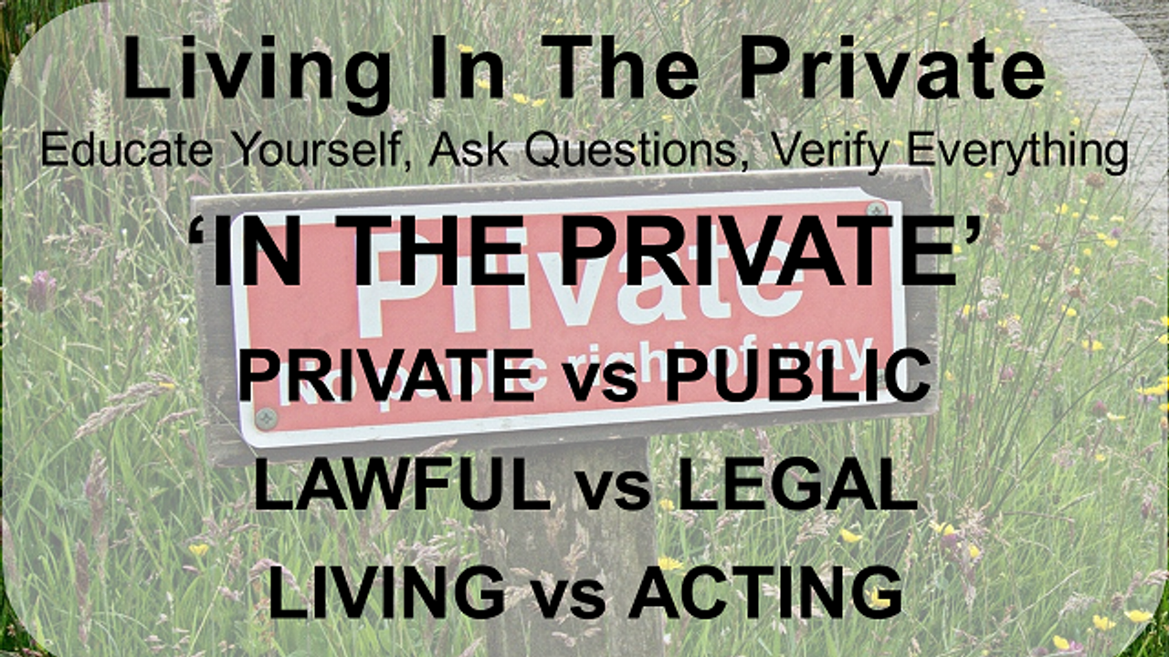 Living In The Private Series: IN THE PRIVATE is a brief overview of the differences between living in the private (lawful) and acting in the public (legal)