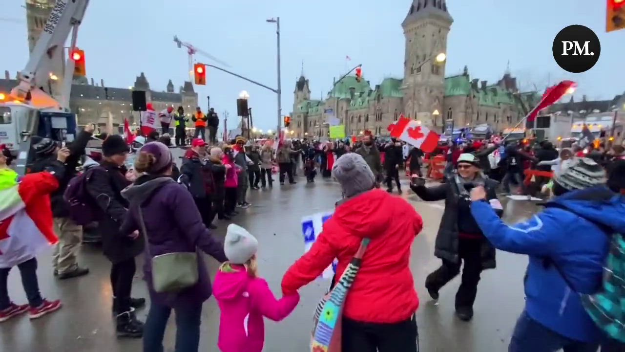 Freedom Convoy Supporters Hold Hands and Sing 'We Are the World'