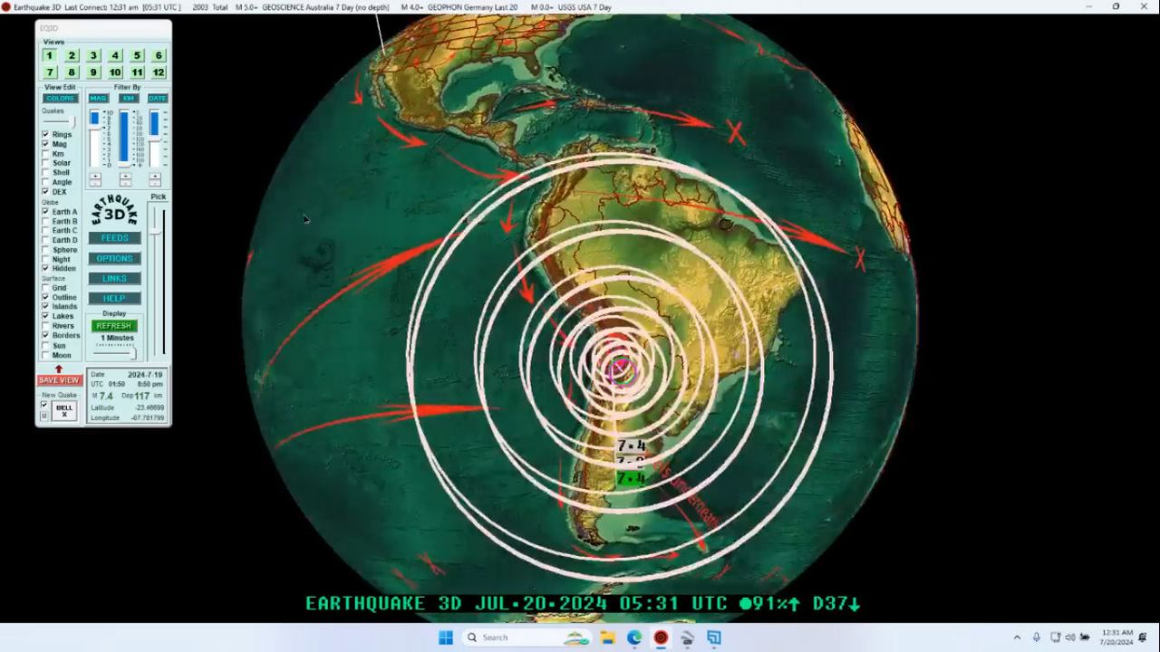 Last night, July 19, 2024, a large M7.4 (M7.3) earthquake struck the border of North Chile and Bolivia / Argentina.