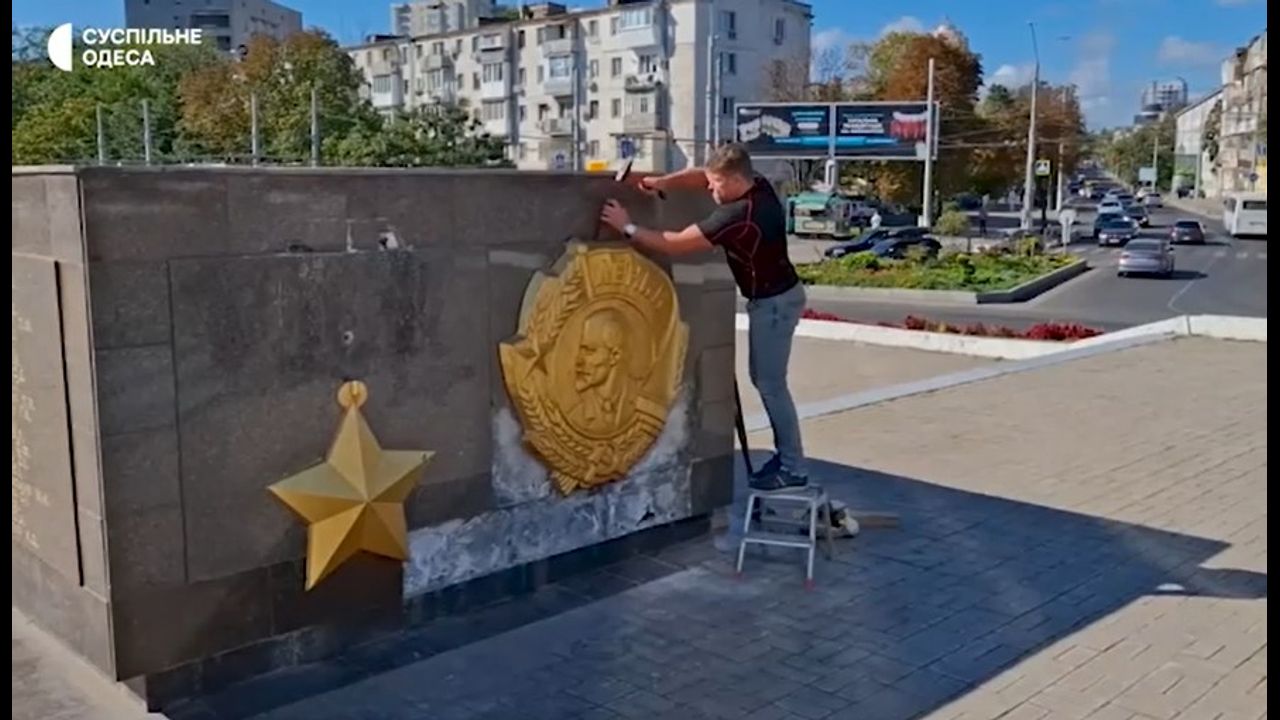 In Odessa, the bas-relief of the Order of Lenin and the Gold Star medal was "finished off".