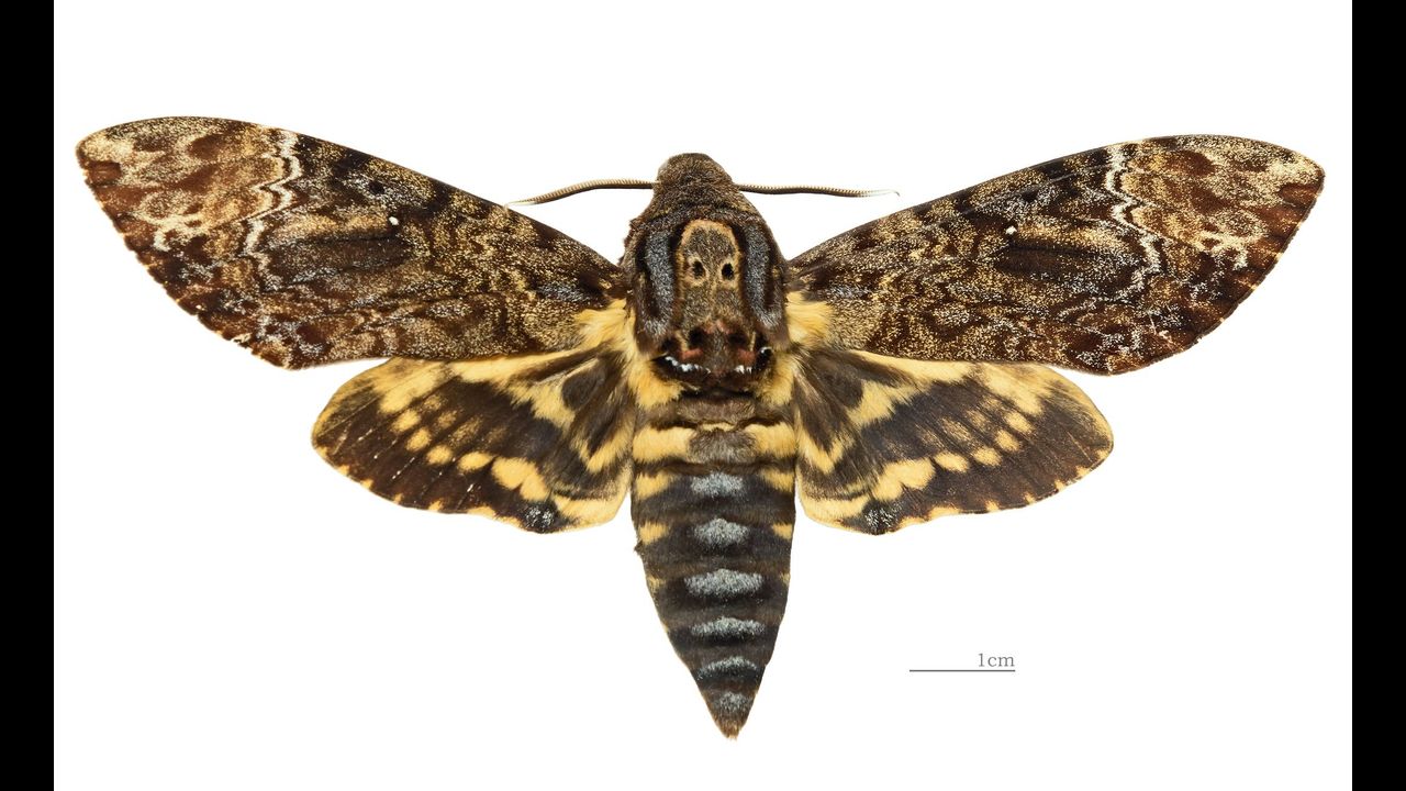 The picture used is a photograph taken by Didier Descouens of an acherontia lachesis - dorsal side, from the collection of the mathematician Laurent Schwartz, as part of the Muséum de Toulouse collection, and licensed for reused under the Creative Commons Attribution-Share Alike 4.0 International license (https://creativecommons.org/licenses/by-sa/4.0/deed.en)