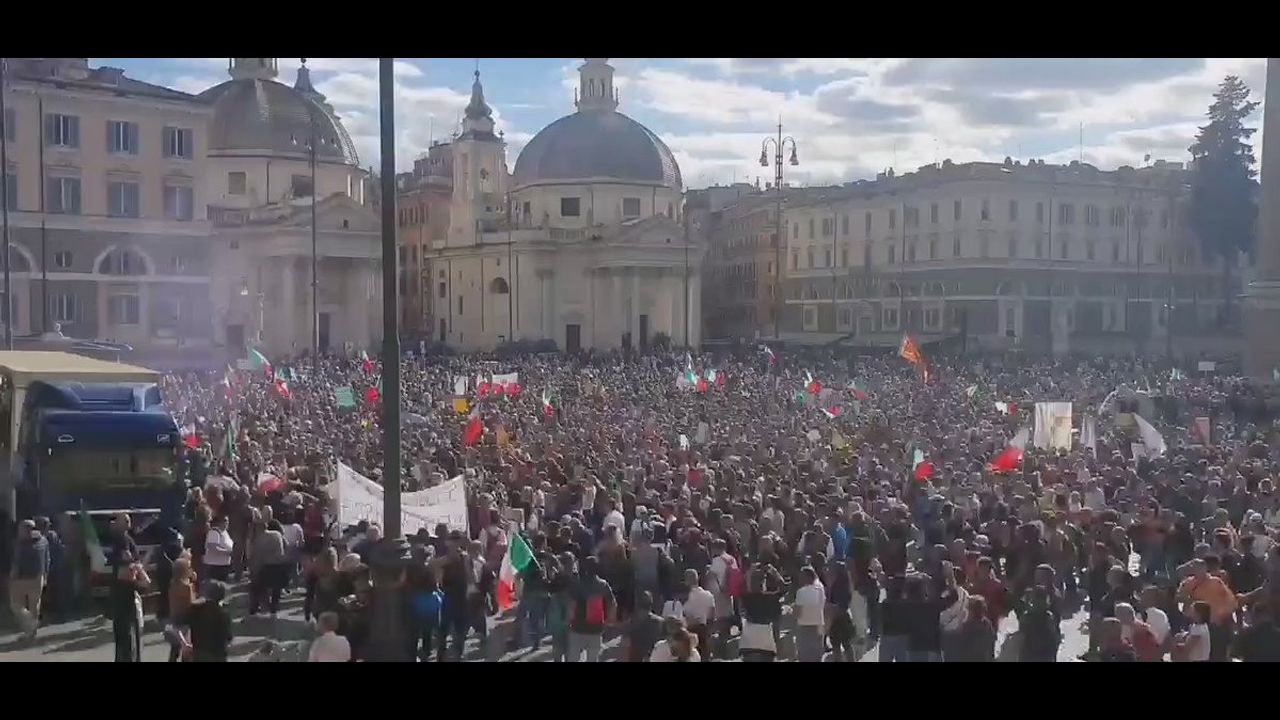 Large Protest Against the Vaccine Passport in Rome, Italy