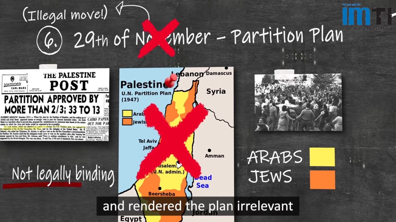 History of the Israel's Land rights from 1917 to 1947 under the British, the League of Nations and the United Nations.