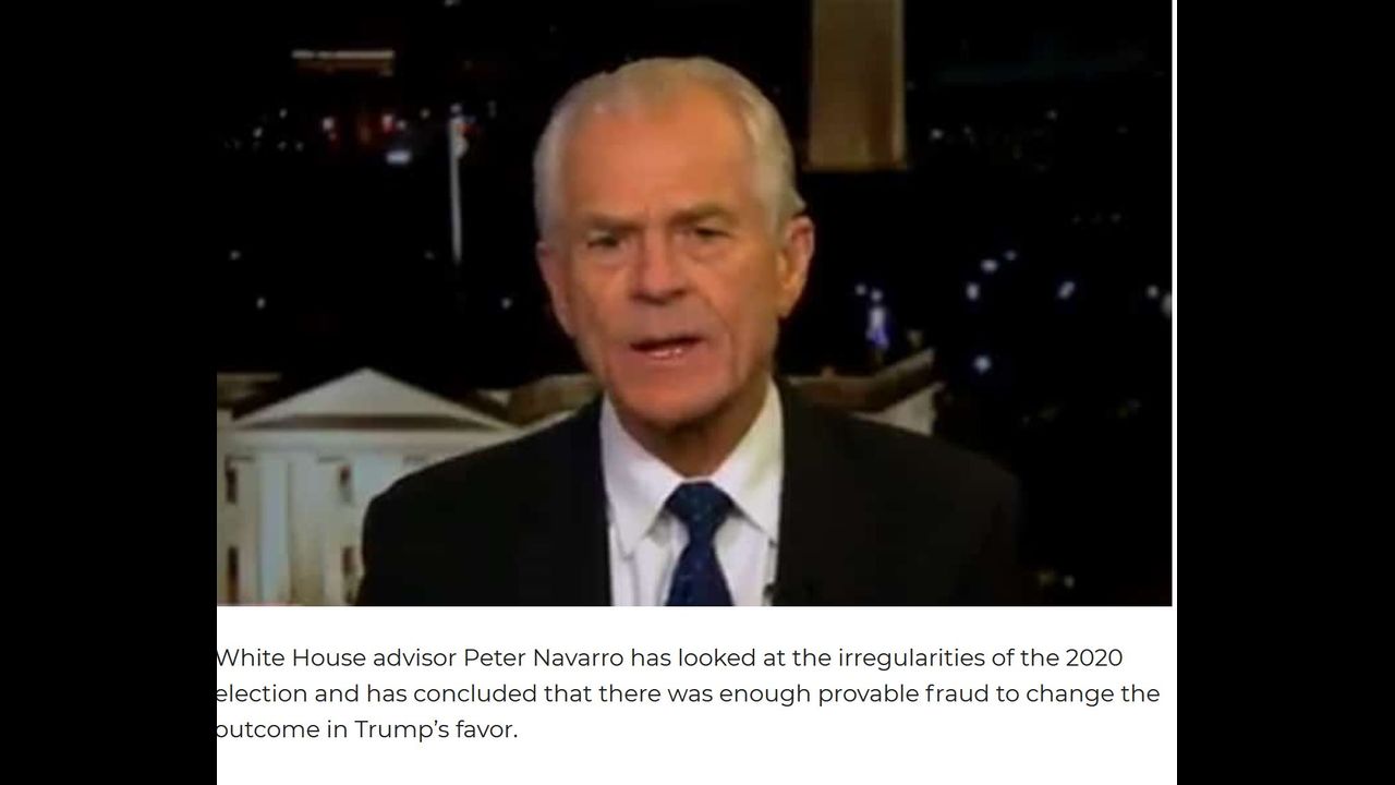 Director of the Office of Trade and Manufacturing Policy Peter Navarro published a lengthy report Thursday outlining several examples of voting irregularities that are “more than sufficient” to swing the outcome of the election in President Trump’s favor