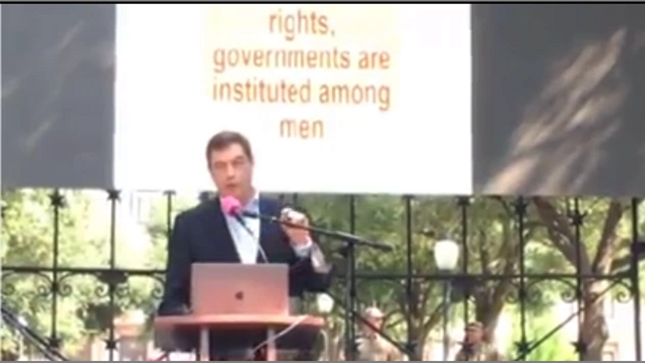 Tom Glass, representing Texas Constitutional Enforcement, speaking to the Constitutional Rights Summit at the Texas Capitol on October 3, 2020.