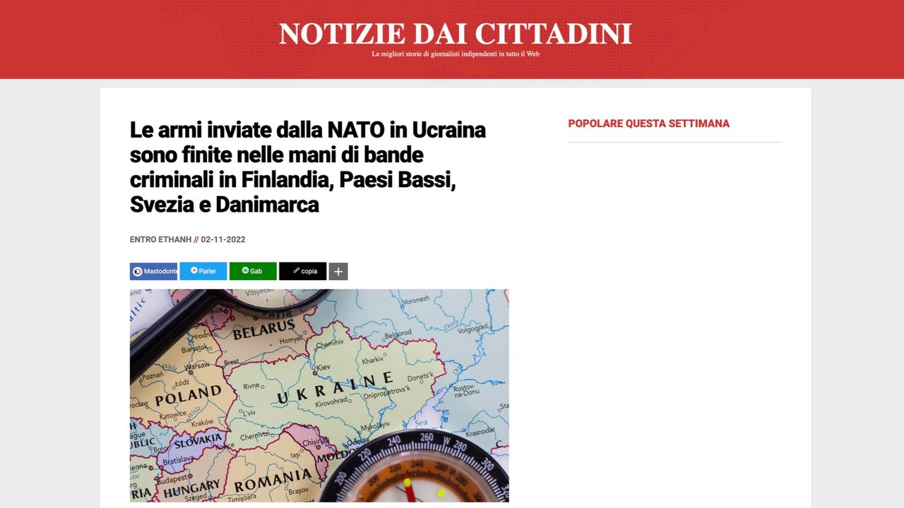 La Finlandia afferma che le armi dell'Ucraina finiscono nelle mani di bande criminali 03 Novembre 2022