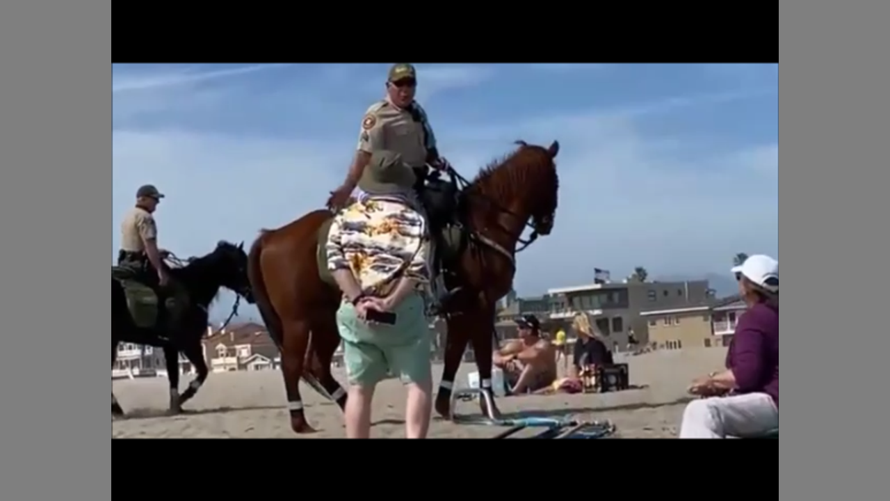 Cops heckled as they tell a 93-year-old couple they're not allowed to SIT in CHAIRS on the beach!