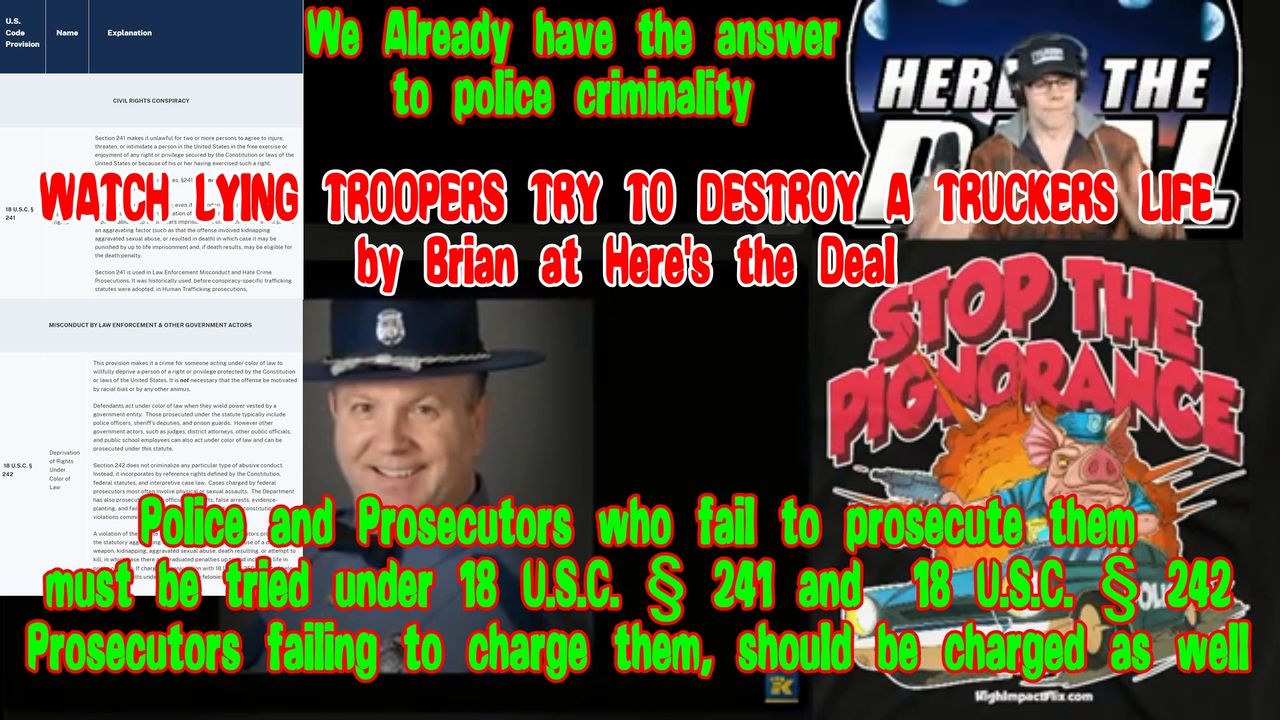 Prosecutors who fail to prosecute Police and other supposed "Government" personnel guilty of Crimes against THE PEOPLE they serve, should ALSO BE CHARGED UNDER THESE STATUTES!
