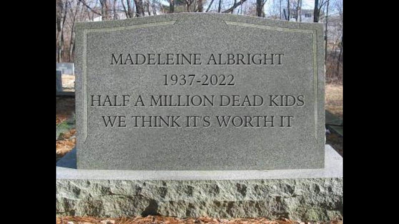 Source https://www.veteranstoday.com/2022/03/23/madeleine-albrights-epitaph-half-a-million-dead-children-we-think-its-worth-it/