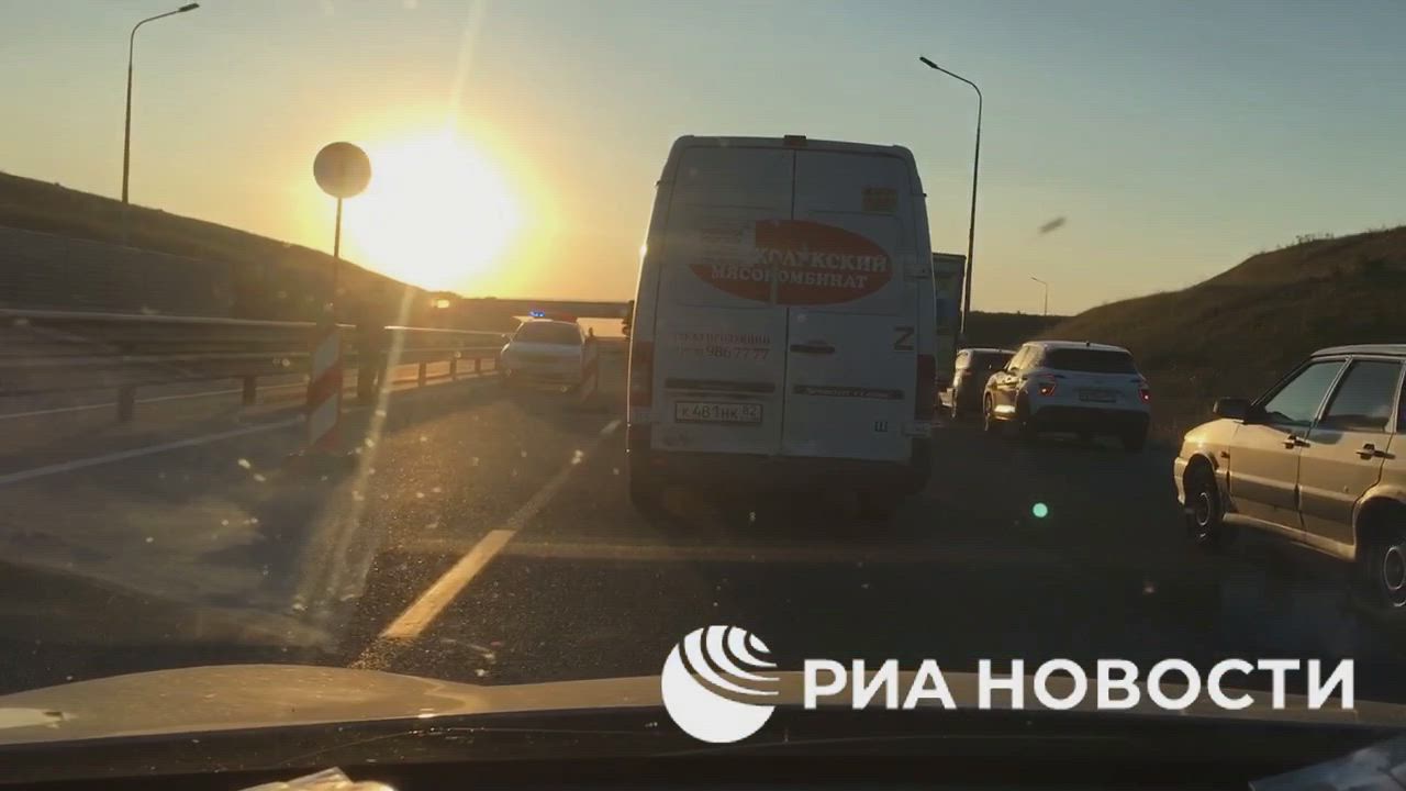 The Ministry of Transport reported that the road surface on the spans of the Crimean Bridge has been damaged from the Crimean side.