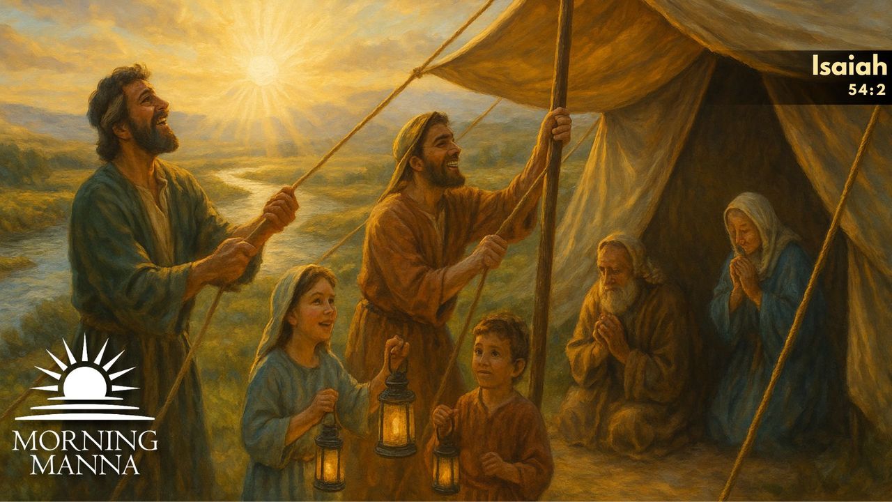 Isaiah 54:2 calls on believers to act on promise—enlarge the tent, stretch the curtains, lengthen the cords, strengthen the stakes. Out of redemption flows expansion: the covenant people must prepare for the nations to enter. This Morning Manna study with Rick Wiles and Doc Burkhart explores how faith readies space before the blessing arrives, teaching that divine growth demands both reach and reinforcement—expansion grounded in strength, not presumption.