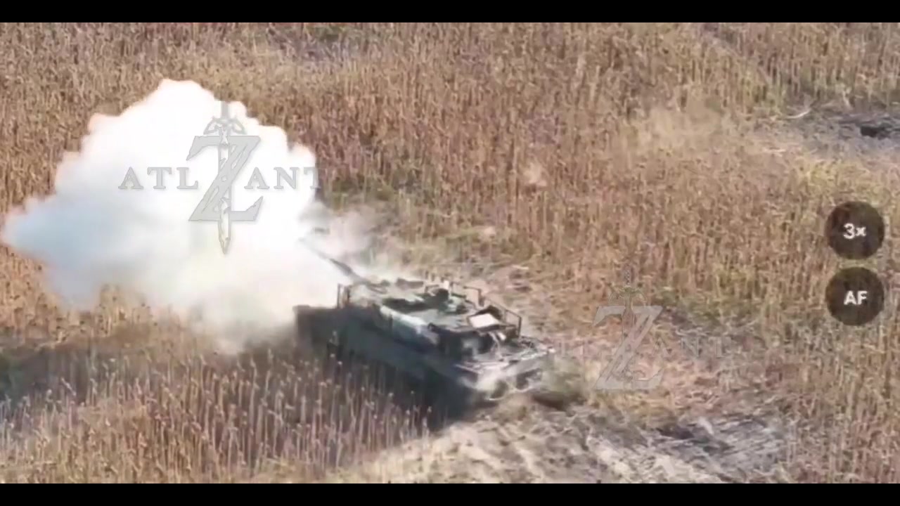 An FPV drone lands right on the forehead of a Leopard 2A6 tank, causing a fire in the propellant charges of the ammunition.