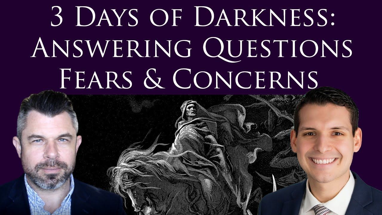 3 Days of Darkness Questions Answered here. After my original video on the Three Days of Darkness, there were many questions and concerns about the details of the 3 Days of Darkness and its aftermath for the world and for the Church. Ray Grijalba (@JoyoftheFaith) and Dr. Taylor Marshall provide research and answer questions to the most common questions about the Three Days of Darkness.