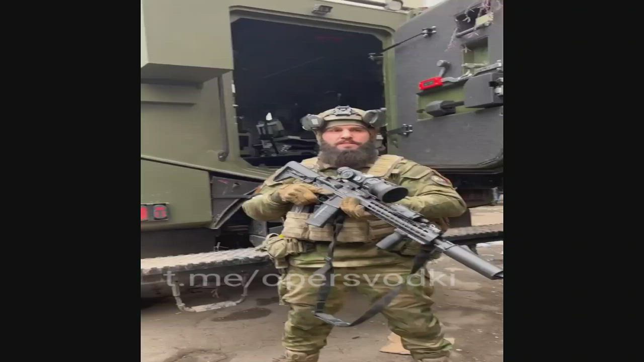 Russian Military Officer of Chechen origin Hussein Majidov with a Captured Rifle in his Hands 031622