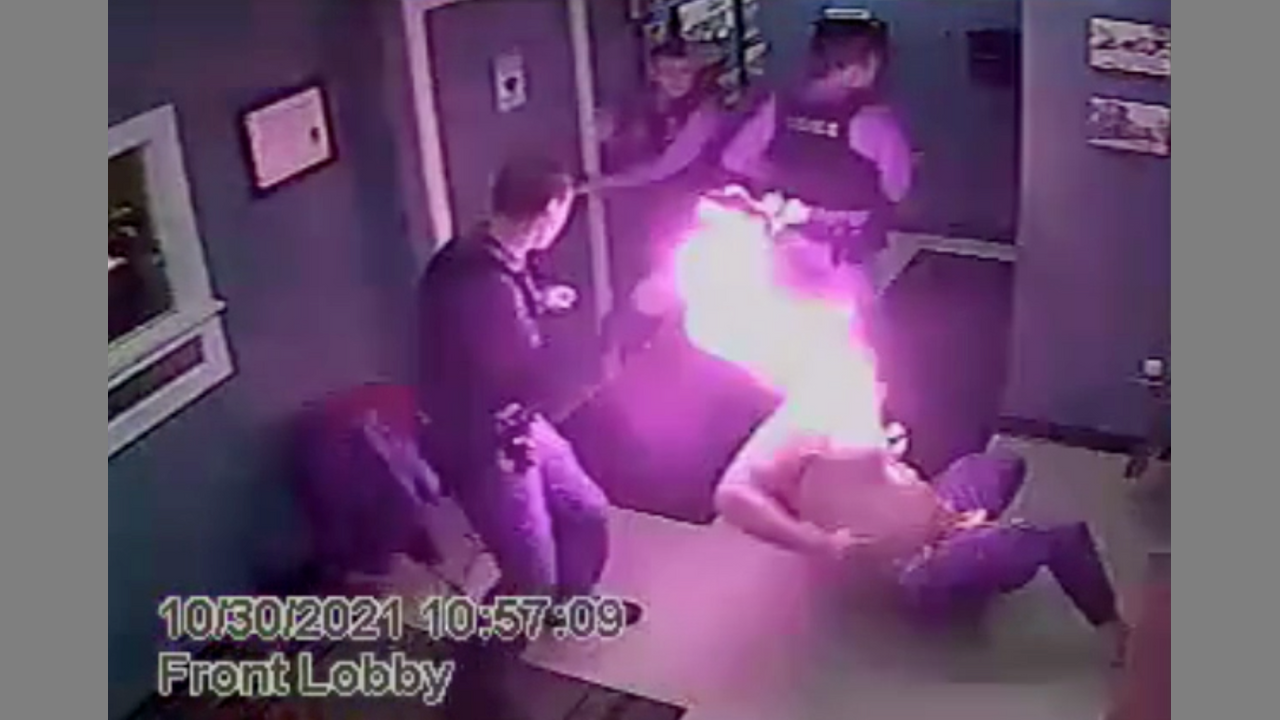 Man bursts into flames after being tasered