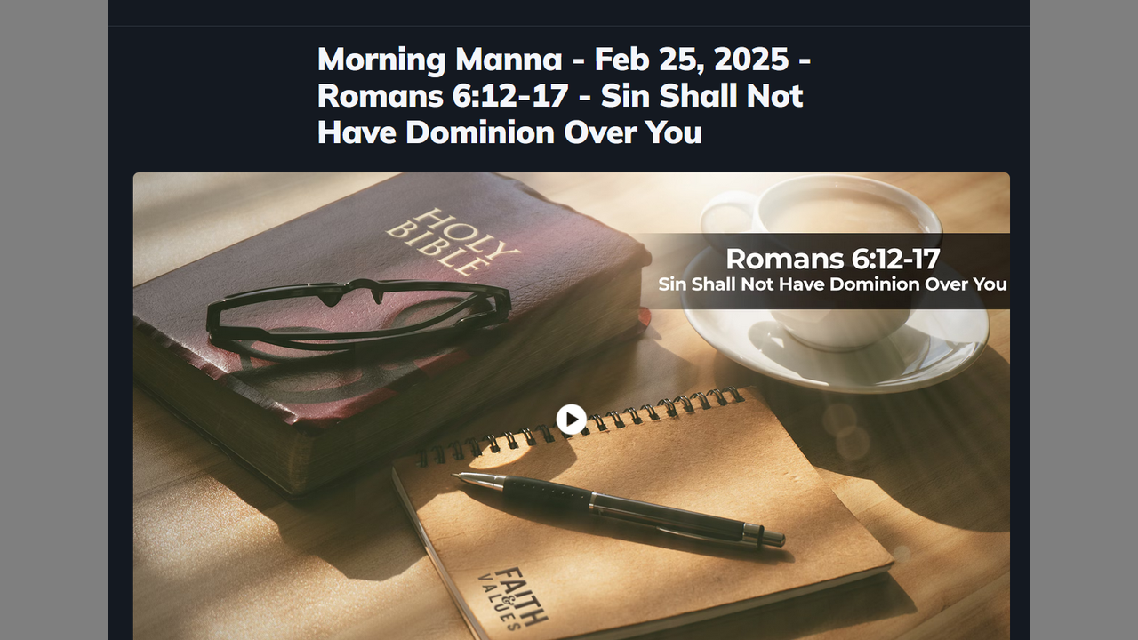 In today's Morning Manna, Rick and Doc continued their study of Romans, focusing on Romans 6:12-17. They discussed how sin's authority over believers is broken through Jesus Christ, yet sin still exists and attempts to regain control. They emphasized the believer's responsibility to resist sin, the importance of aligning one's actions, thoughts, and words with God's will, and the concept of obedience as a form of worship. The discussion also explored the deeper meaning of "catholic" as maintaining the true doctrine of Christ and highlighted the need for discernment in modern church teachings. They concluded with encouragement to seek the pure gospel and to live in a way that reflects holiness and victory over sin.