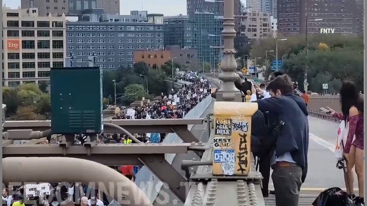 NYC Oct 25th Huge Freedom Rally Covid-19 Anti-Vaccine Mandates Protest March Across Brooklyn Bridge