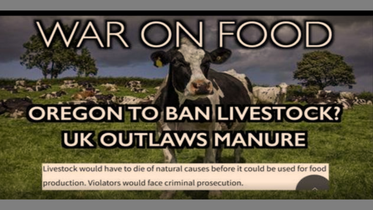 Oregon Bill IP13 would criminalize raising food animals in the state, and reclassify animal husbandry practices as "sexual assault." The bill specifies that animals can only be eaten after dying of natural causes (at which point, aged/diseased meat is not good). Oregon's 12,000 beef producers raising about 1.3 million head of cattle are slated for elimination, as traditional farming and ranching is shut down in favor of lab-grown meat and indoor farms owned by the technocrats -- a perfect way to force the population into perfect slavery. Christian breaks it down in this Ice Age Farmer broadcast.