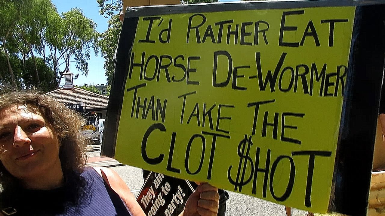 After our benighted Premier, Mark McGowan, ‘took health advice’, and closed down all gatherings of 500 or more in the week before New Year’s Eve and after, EXCEPT for New Year’s Day’s Perth Cup at Ascot Racecourse, on the strength of some molecules found on less than 20 people after a French backpacker tested ‘positive’ recently in Perth, he announced that all who attended the race meeting must show proof of double Covid-19 ‘vaccination’, and wear masks, even though the temperatures are high, which aerosol-spread viruses struggle to survive in, and even though the bulk of the racegoers will be outdoors. This is the first time that a vaccination ‘passport’ system has been employed on a mass-scale in Western Australia, and is the thin edge of the wedge. The couple of hundred of us who protested are trying to wake our fellow citizens up to the further loss of freedoms planned, and the health consequences of the injection cocktail treadmill that has begun. And why favour the horse-racing industry?