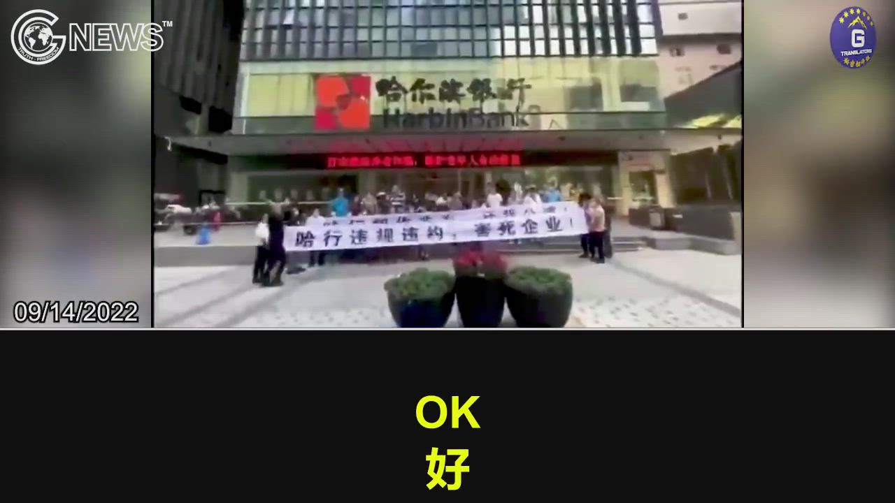 9/14/2022 In front of a branch of Harbin Bank, Chinese depositors gathered to defend their rights by putting up a banner saying "Harbin Bank violated the contract and killed the enterprises", and they chanted: "Harbin Bank, give me justice"