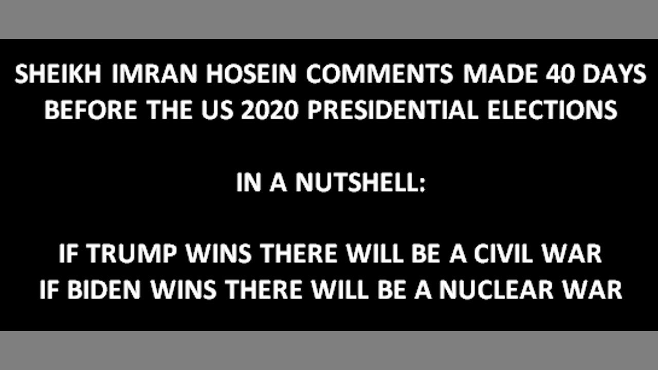 SHEIKH IMRAN HOSEIN - COMMENTS MADE 40 DAYS BEFORE THE US 2020 PRESIDENTIAL ELECTIONS
