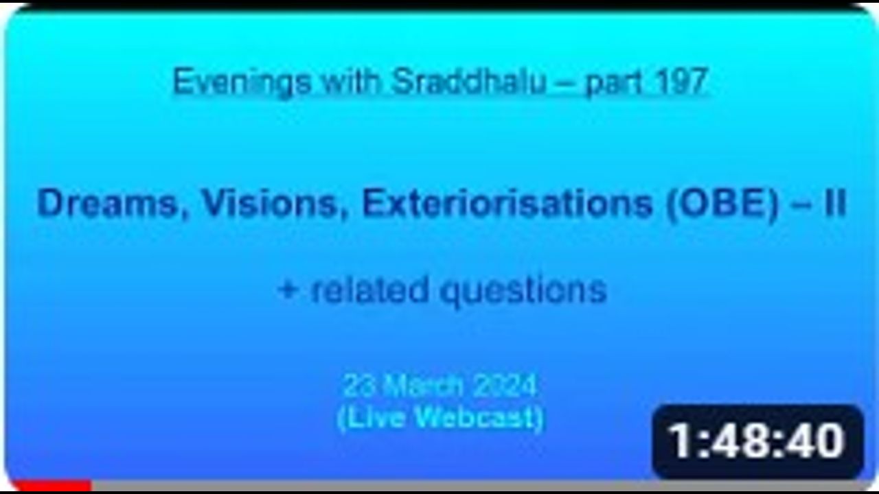 Integral Studies, 03.23.24, Saturday, EWS #197: Dreams, Visions, Exteriorisations (OBE) – II (Evenings with Sraddhalu)