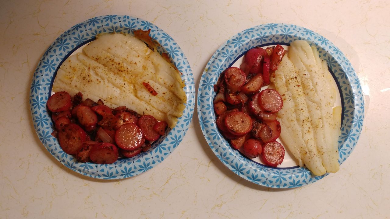 Baked flounder with sauteed radishes, onions and garlic!