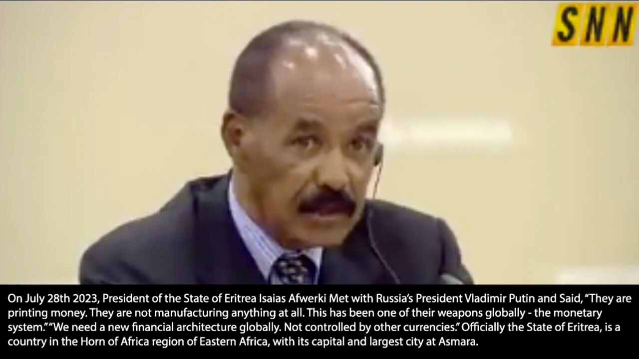 On July 28th 2023, President of the State of Eritrea Isaias Afwerki Met with Russia’s President Vladimir Putin and Said, “They are printing money. They are not manufacturing anything at all. This has been one of their weapons globally - the monetary system.” “We need a new financial architecture globally. Not controlled by other currencies.” Officially the State of Eritrea, is a country in the Horn of Africa region of Eastern Africa, with its capital and largest city at Asmara.