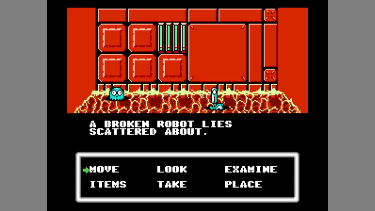 The game is played from first-person view. You have a list of verbs to choose from for commands. In each room, you can look in four directions and upwards, which will turn your character, and you will see different things.