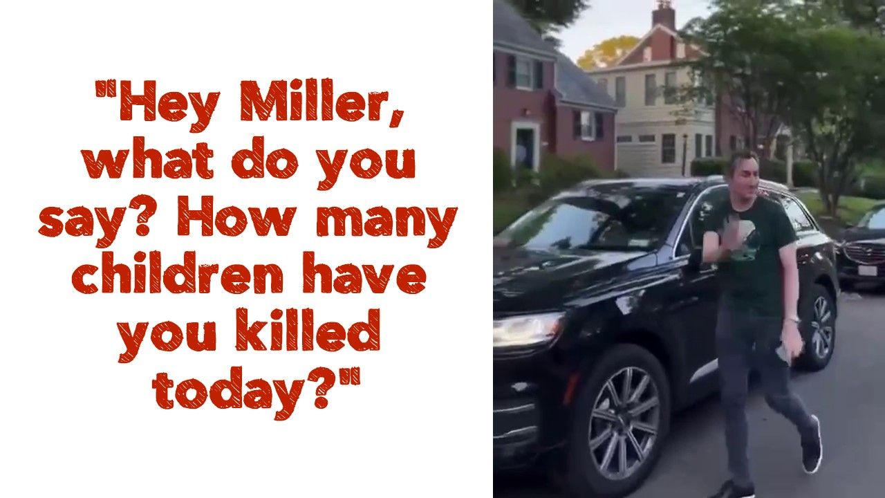 With these words, pro-Palestinian protesters greeted US State Department representative Matthew Miller near his home.