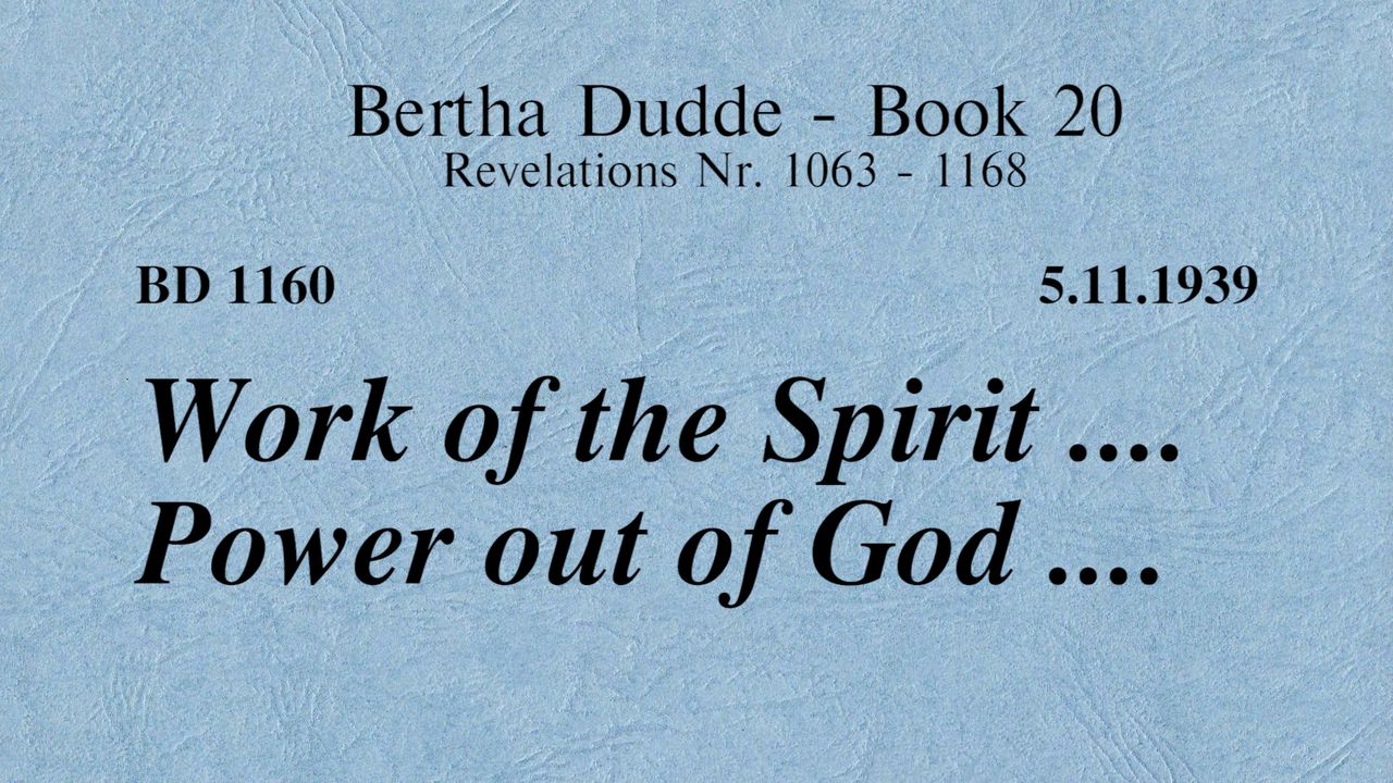 BD 1160 - WORK OF THE SPIRIT .... POWER OUT OF GOD ....