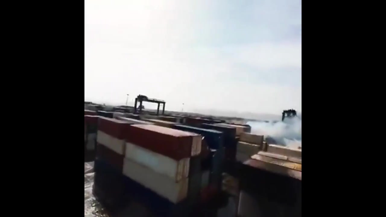 Aerial footage shows rescue and firefighting operations continue at Bandar Abbas' Shahid Rajaei Port.