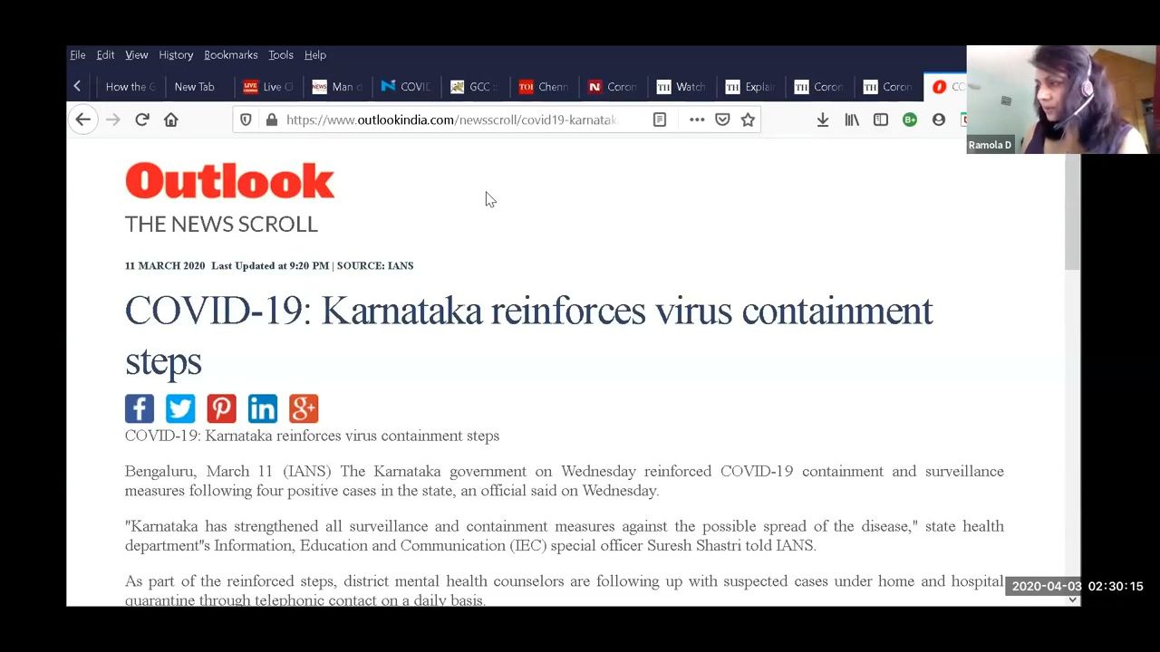 Ramola D Reports: Newsbreak 64, Ramola D CoronaV Report Bangalore, Chennai, India Police, Govt Public Health Overkill (MIRRORED)