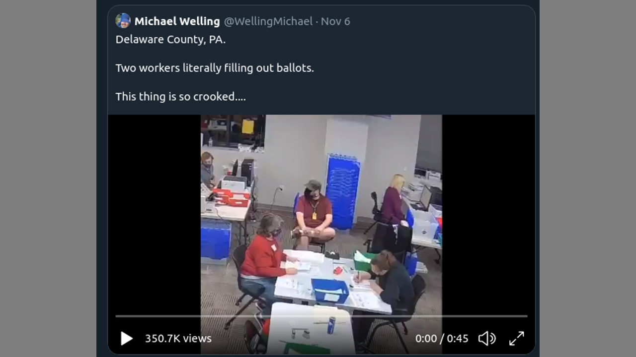 Delaware County, PA Two workers literally filling out ballots