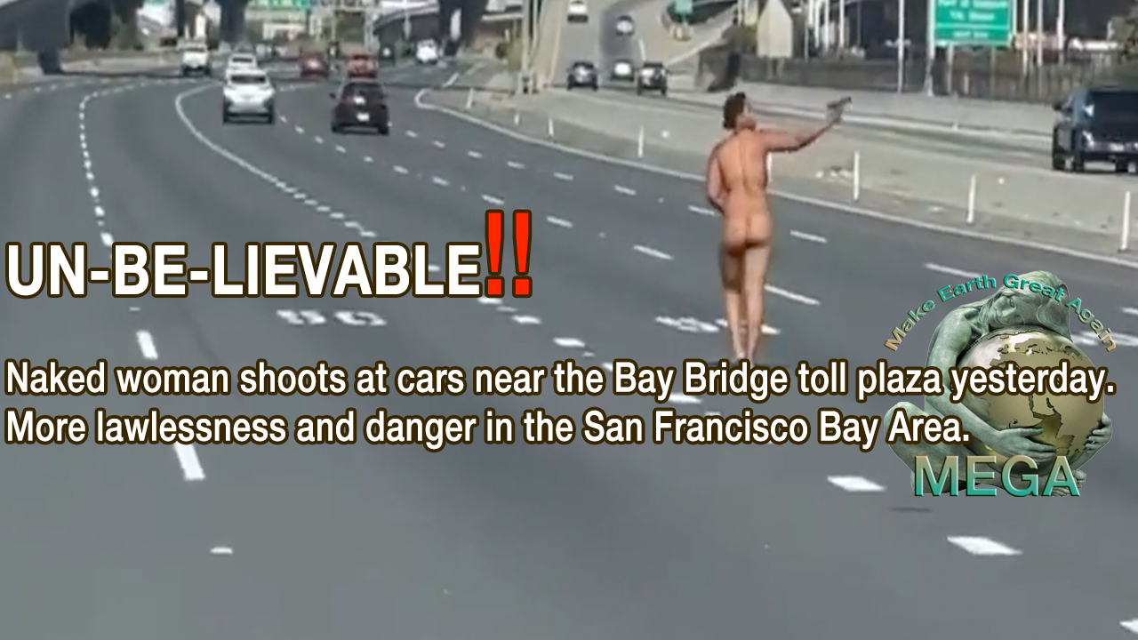 UN-BE-LIEVABLE!! Naked woman shoots at cars near the Bay Bridge toll plaza yesterday - July 26, 2023 - More lawlessness and danger in the San Francisco Bay Area.