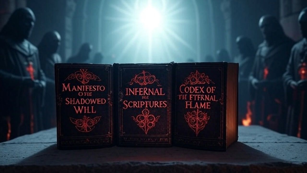 Disclaimer: The texts presented, including The Manifesto of the Shadowed Will, The Infernal Scriptures, and The Codex of the Eternal Flame, are fictional creations imagined for artistic and philosophical exploration. They are not real religious texts, nor do they represent any existing "evil Bible" or established doctrine.